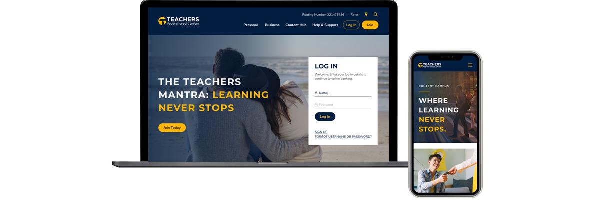 We worked with Teachers FCU to streamline their user experience, bring financial education to the forefront and optimize their site for mobile as well as implement the new brand identity.